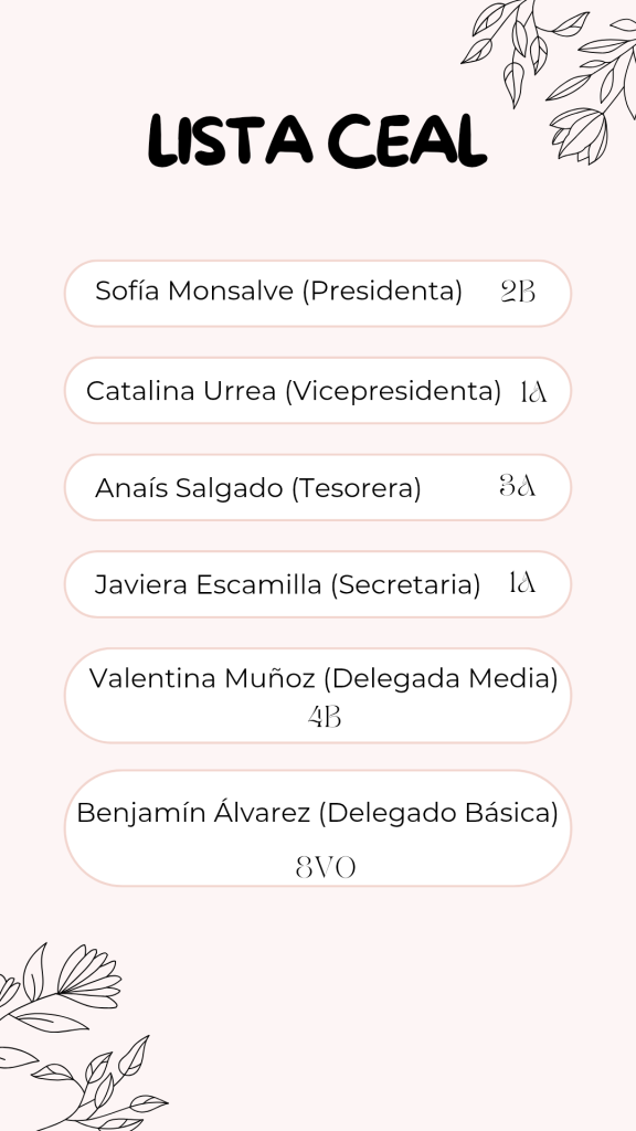 6 de mayo votaciones si aceptan la lista o CEAL será conformado por los presidentes de de cada curso desde 7mo básico.